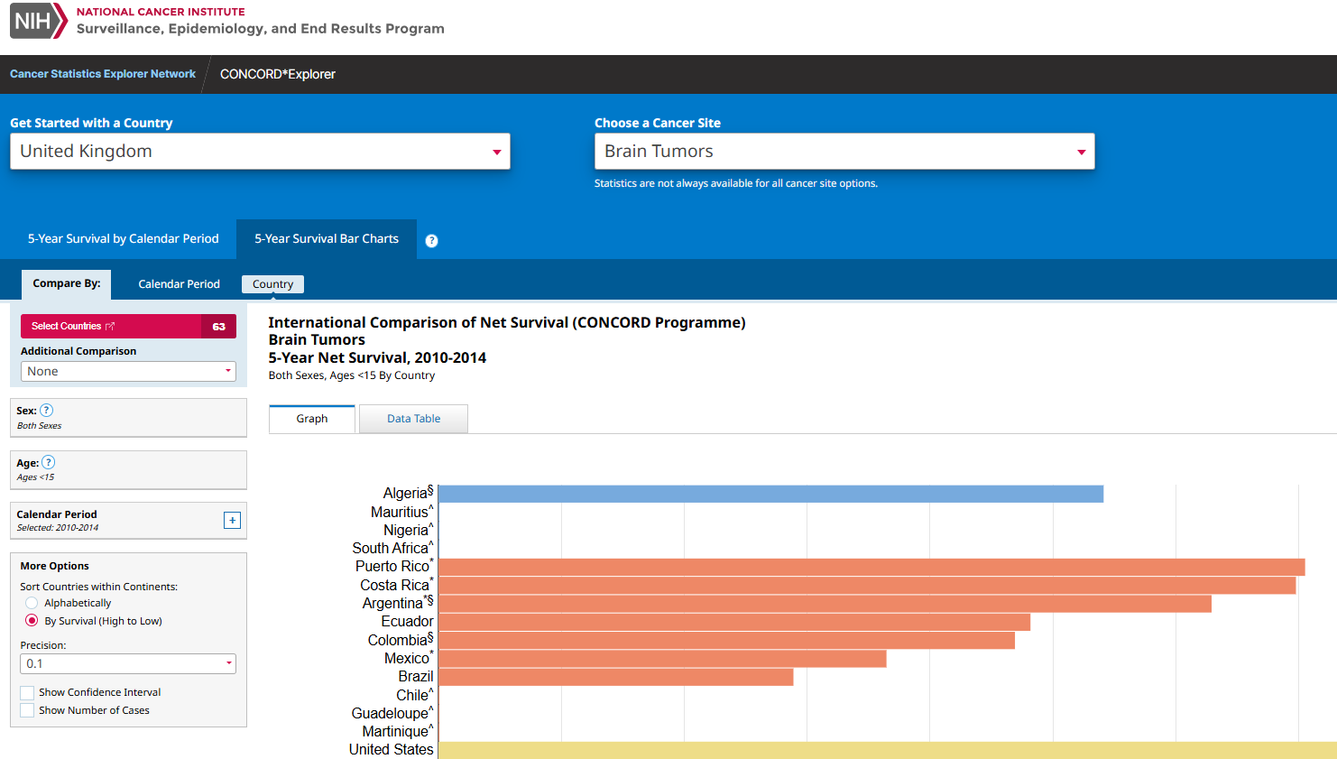 We are delighted to let you know that CONCORD*Explorer is now live on the NCI website! This is a new collaboration between the Cancer Survival Group in London, the SEER program at the National Cancer Institute, with support from the North American Association of Central Cancer Registries (NAACCR) and Information Management Services, Inc. (IMS).